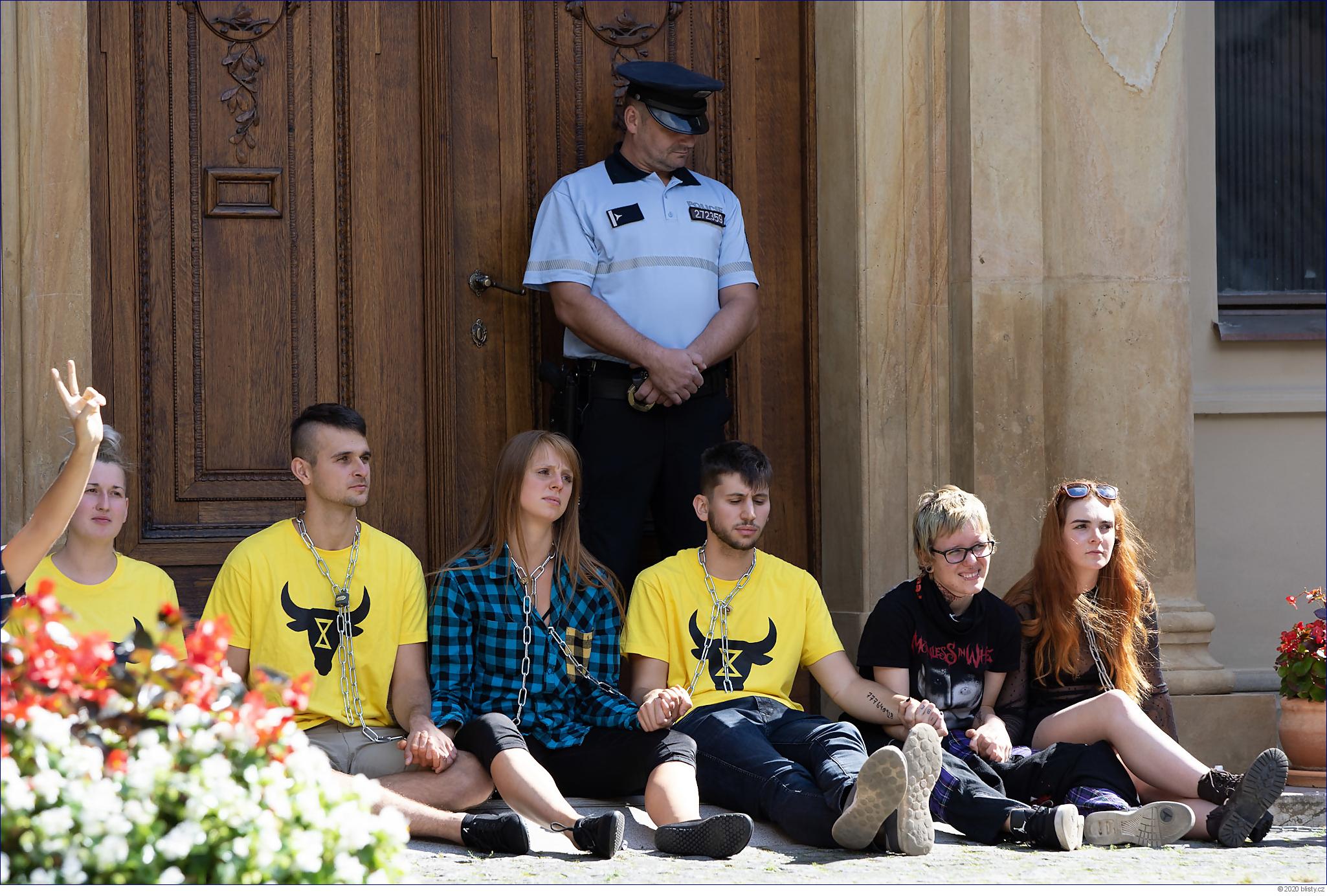 Včera 4. září aktivisté z hnutí Animal Rebellion obarvili vodu ve fontáně Propadliště času na Kinského náměstí v Praze na červeno jako symbol krve nevinných lidí a zvířat, kterou vláda nese na svých rukou. Zároveň téměř nazí lidé na fontánu vylezli. Tři z nich měli na své hrudi napsaný jeden požadavek po vládě České Republiky. „Říkejte Pravdu“, „Jednejte Okamžitě“ a „Rozšiřte Demokracii“.