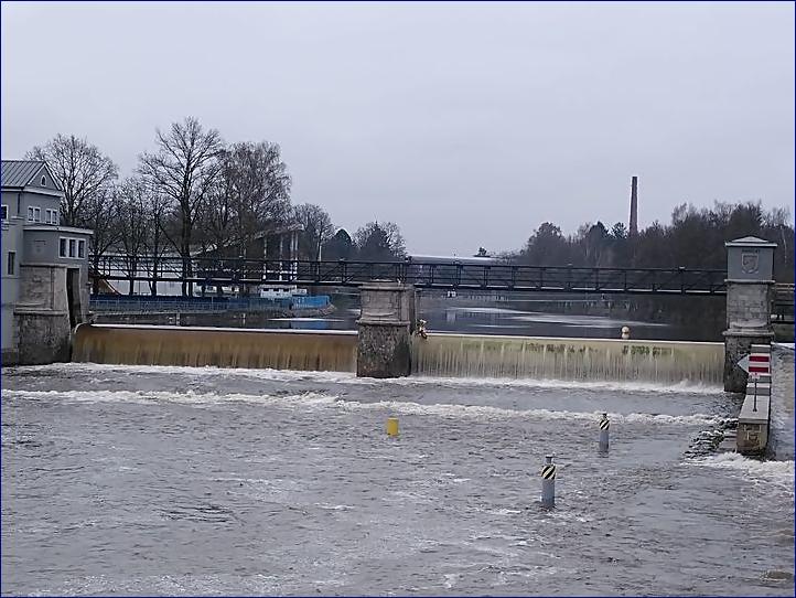 Na obrázku: Jez na Vltavě v Českých Budějovicích, zhruba sto metrů za soutokem s Malší. Právě teď.