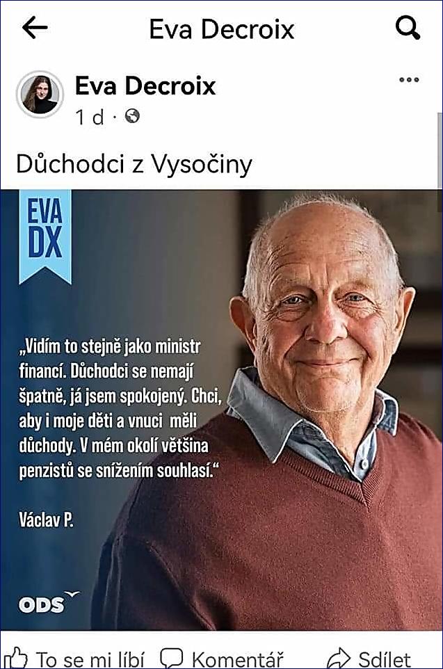 Žádný kvalitní důchodce už nesmí promeškat svou důchodcovskou šanci udělat ze sebe tupého vola a až se bude, a ono se bude, státnicky snižovat plat určitým vrstvám, měl by se hrdě přihlásit o poctivý díl. Autor Jiří X. volil ultrapravici s hnědými rysy, aby jemu a jeho sociální bublině utáhli šrouby a opasky. Dočkali se (nejen oni) utažení na vařené nudli resuscitované politiky klient mafiánského komunismu pod vedením ODS. Opět i Jiří X., jako Hovorková i Fiala se Šafrem, musel čtenářům osvěžit paměť, kdo že to může za dnešní chudobu, aneb zase od Putina přes sociální spodinu po Babiše a zpět. Rozumní racionální ví, ti druzí, kteří vidí vinu na straně neoliberální české pravice jen fňukají. Důchody však nerostou kvůli nasupenosti socialistického důchodce, jak praví Jiří X., důchody rostou kvůli kapitalistickým cenám nenažraného českého Oligopolu, což vláda a její komentátoři jaksi nevidí.