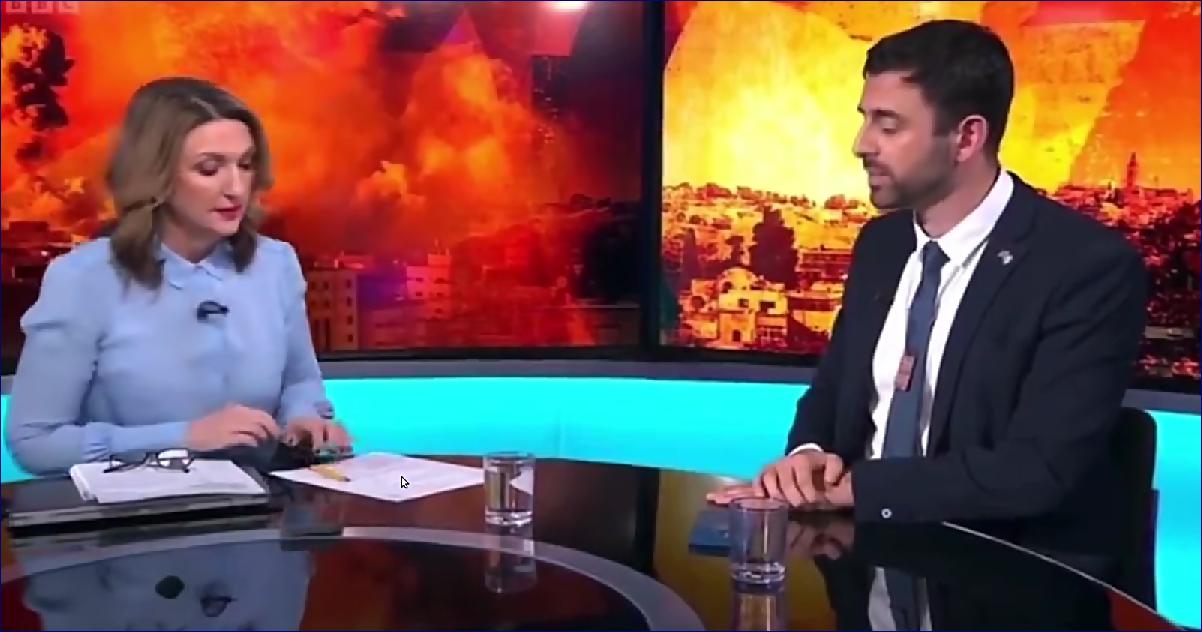 S izraelským vládním mluvčí mnozí často zacházejí v rukavičkách. Victoria Derbyshire z BBC News taková není. Kdykoliv se Levy snaží blábolit na autopilotu, ona ho opakovaně fackou vrátí zpět na zem: