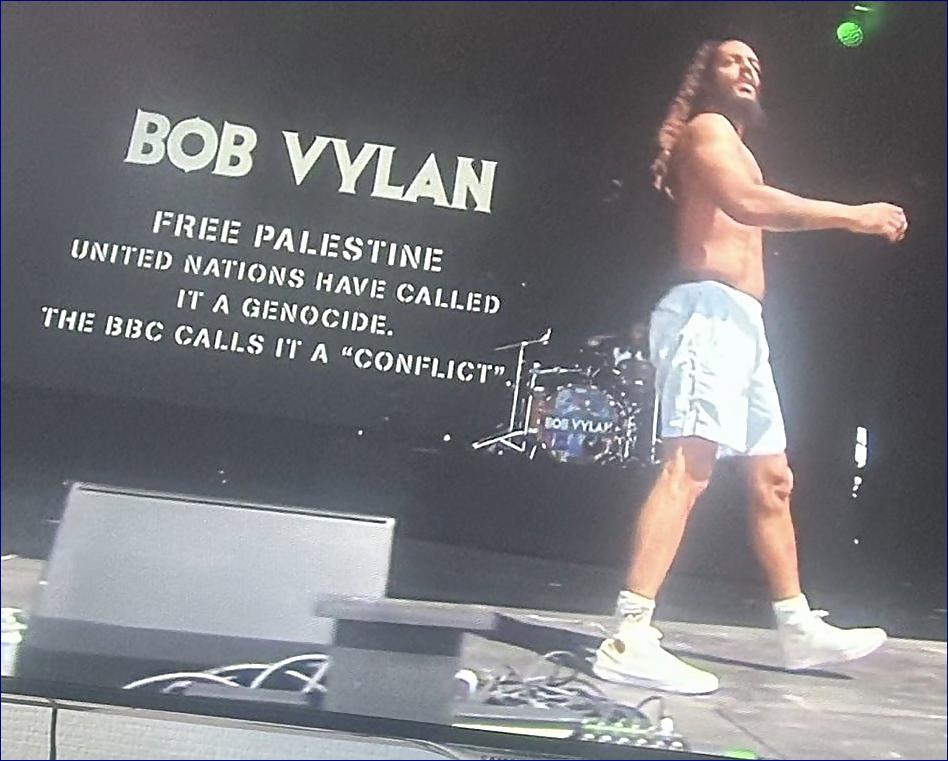 Tak se BBC pokusila skupinu Kneecap zcenzurovat, jenže během živého televizního vysílání před jejím vystoupením vystoupil zpěvák Bob Vylan, který jednak umístil na pódium transparent s nápisem