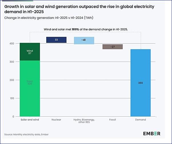 2) Obnovitelné zdroje POPRVÉ v dějinách vyrobily víc elektřiny než uhlí. Též celosvětově.