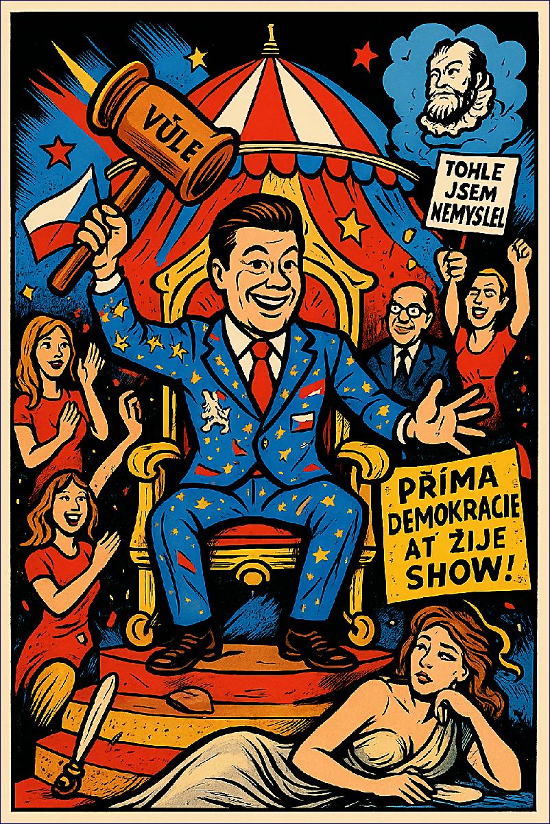 Je to experiment, který ukáže, jak daleko se dá posunout hranice mezi institucí a spektáklem. On sám jistě začne mluvit o „obrodě demokracie“, o „návratu moci lidu“ a o „přímém hlasu občanů“. Ale v reálu půjde o cosi zcela opačného: centralizaci pozornosti, proměnu parlamentu v jeviště, kde hlavním smyslem není rozhodovat, ale být viděn.