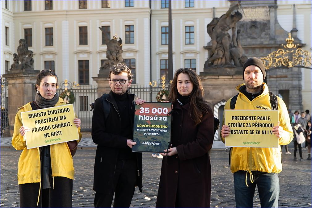 Greenpeace dnes předalo prezidentovi 35 000 podpisů za důvěryhodného ministra životního prostředí