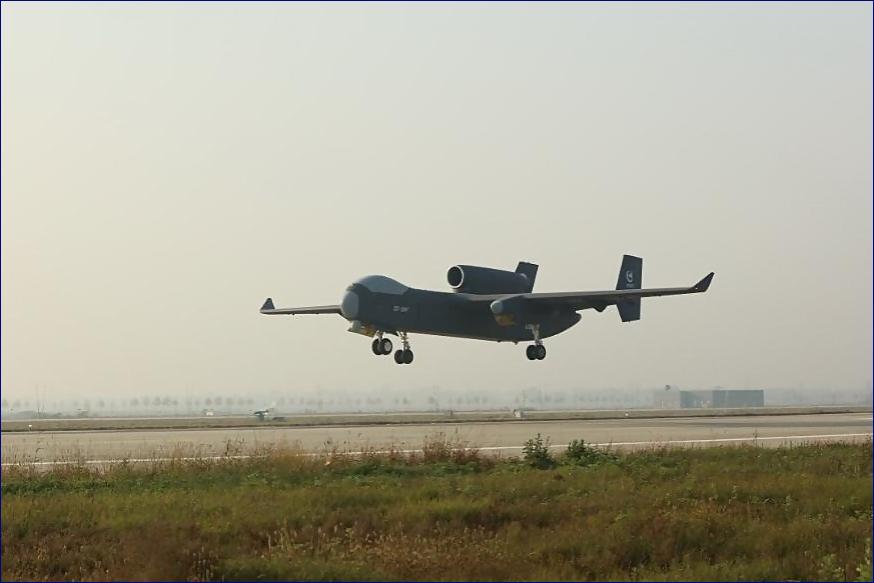 Čínský víceúčelový dron, který je dlouhý 16,35 m a má rozpětí křídel 25 m, vzlétl ve městě Pchu-čcheng v provincii Šen-si na severozápadě Číny.