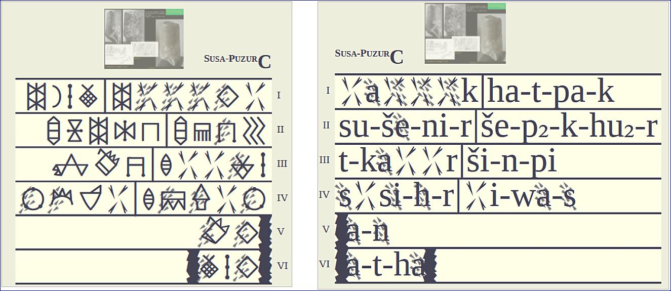 Písmo se skládá ze 77 znaků – kosočtverců, křivek a dalších geometrických vzorů – a pochází z kultury Elam z doby bronzové, která z oblasti dávno zmizela.