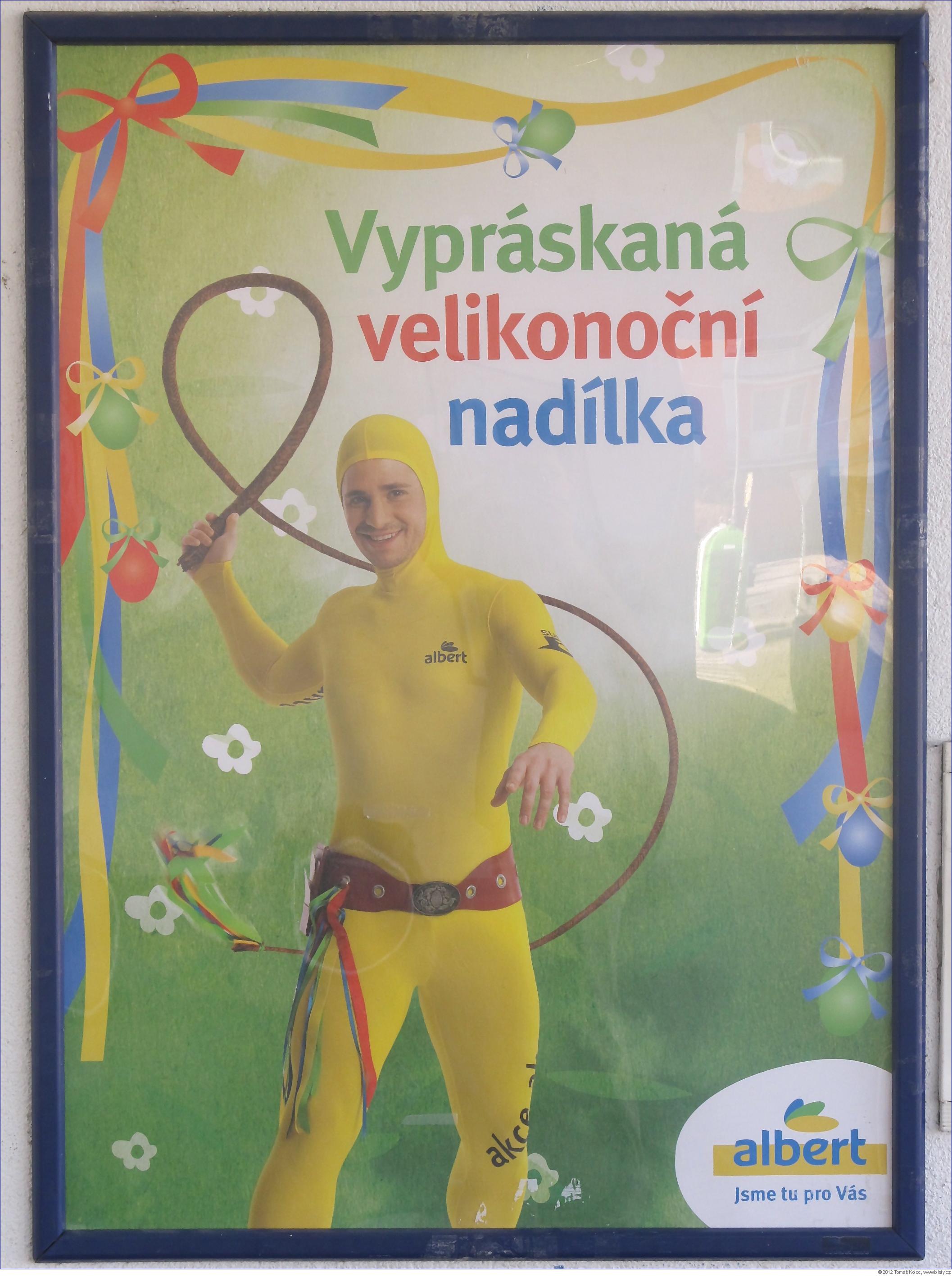 Toto je titulní reklama kampaně obchodního řetězce Albert na některé výrobky, které budou v akci o letošních Velikonocích. Pokud vám přijde, že nabídka Alberta bude o Velikonocích ještě vypráskanější, než obvykle, a že do toho obchodu už vůbec nemá cenu chodit, pak byla antireklama úspěšná.